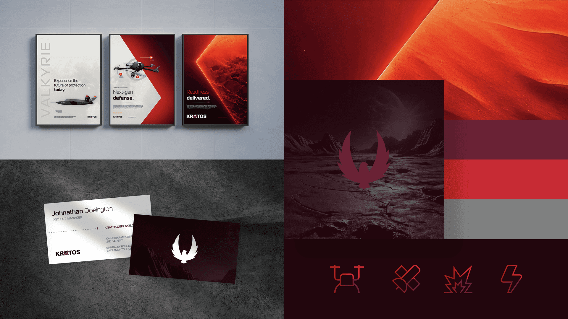 Kratos engineers and deploys technology and systems that move national security forward, with the cost, speed, and reliability that make readiness certain. Starting from the letter “K” to create a flexible visual system aligned with its innovation and performance strategy. This new ecosystem reflects its commitment to technologies that enhance the country’s readiness and security across land, sea, and air, integrating these domains into a dynamic design that conveys speed, strength, and adaptability.